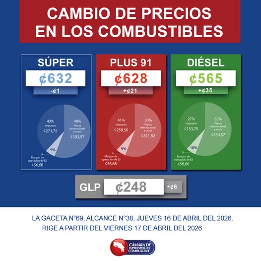 Los precios de los combustibles sufrirán un nuevo ajuste a partir de este viernes 17 de abril de 2026, con aumentos en la mayoría de productos y una leve rebaja en la gasolina súper.