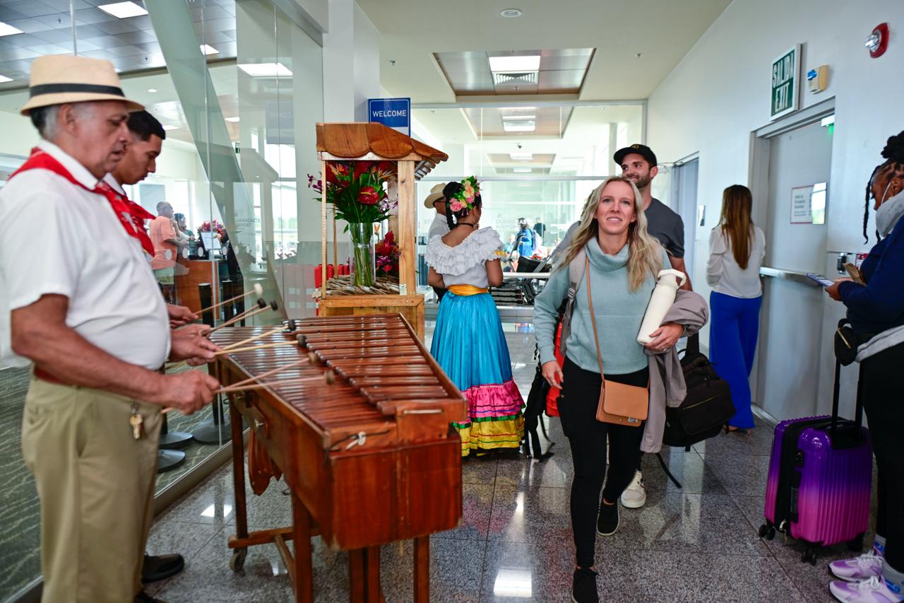 Los pasajeros de los vuelos inaugurales llegaron en un ambiente festivo y recibieron regalías por parte de las autoridades del Ministerio de Turismo (ICT) y de Guanacaste Aeropuerto.