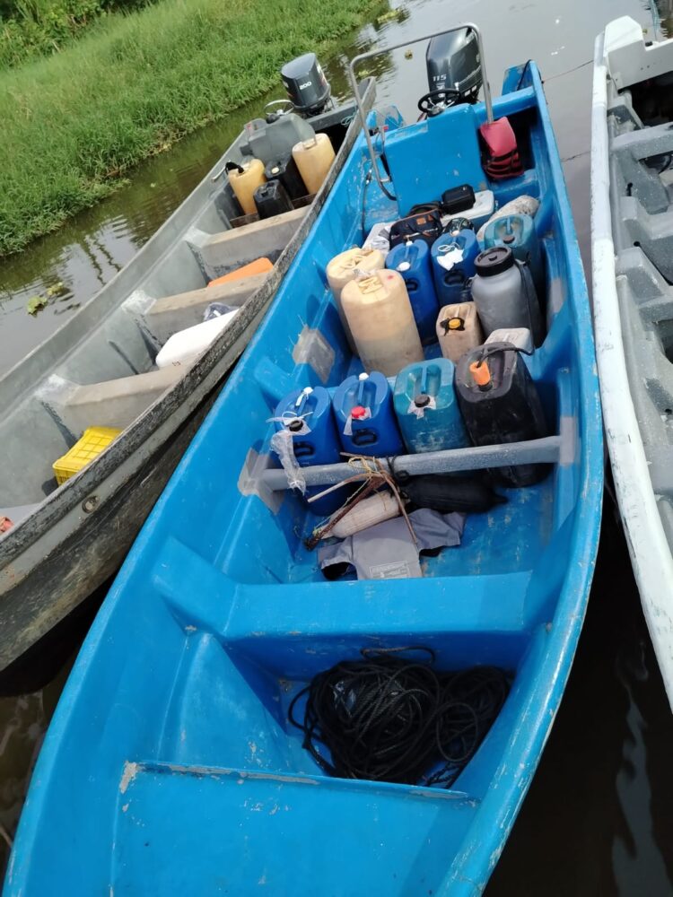 Tras varios minutos de seguimiento, los guardacostas lograron interceptar la embarcación. Durante la inspección, las autoridades encontraron un total de nueve estañones con combustible, que sumaban aproximadamente 580 litros, una cantidad que supera lo permitido para ese tipo de nave.