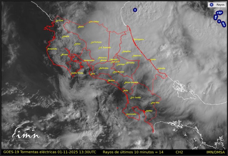El Instituto Meteorológico Nacional (IMN) informó que las lluvias intermitentes continuarán este sábado en el Caribe y la Zona Norte, como consecuencia del empuje frío número uno, el cual está acelerando el arrastre de humedad desde el mar Caribe hacia el este y norte de Costa Rica. Estas condiciones mantendrán un ambiente lluvioso y ventoso durante gran parte del día.