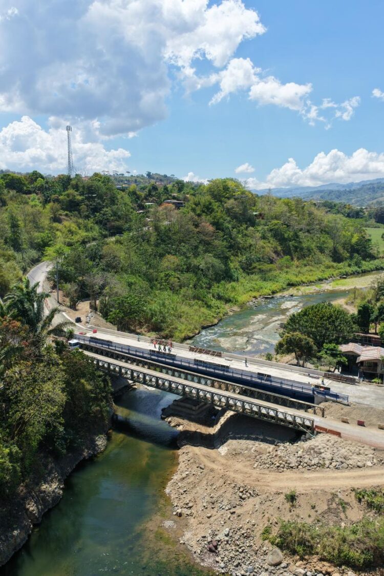 La estructura, que forma parte de la ruta nacional 243 —clave para la conexión entre Dominical y San Isidro de El General— permitirá una circulación más fluida y segura en ambos sentidos, sustituyendo el actual paso provisional de un solo carril.